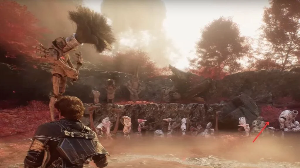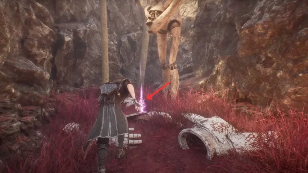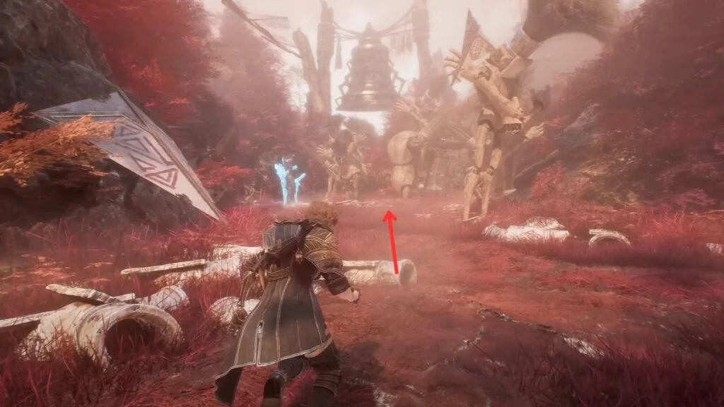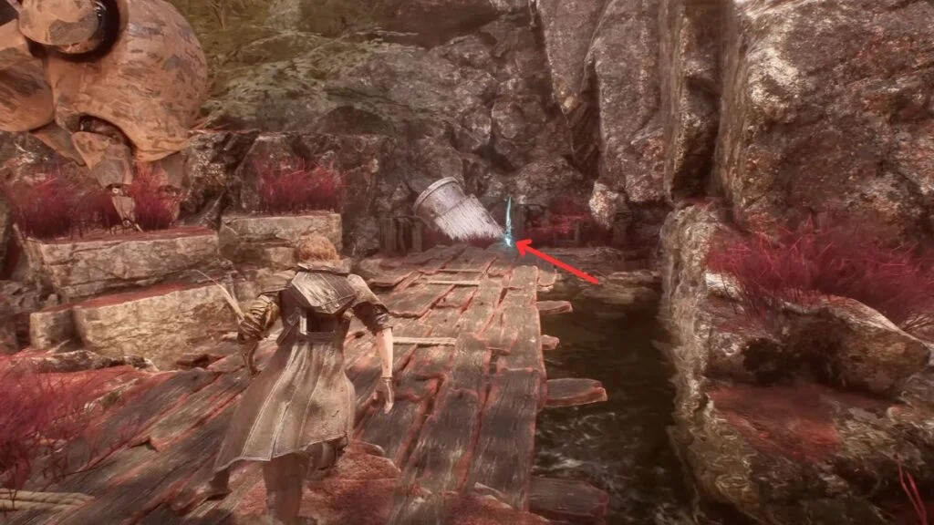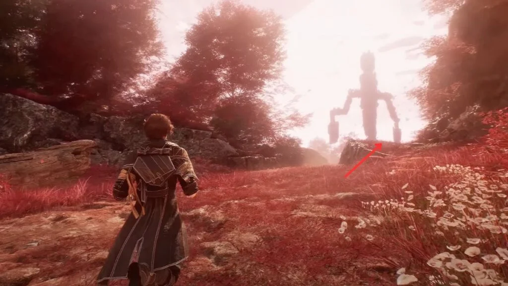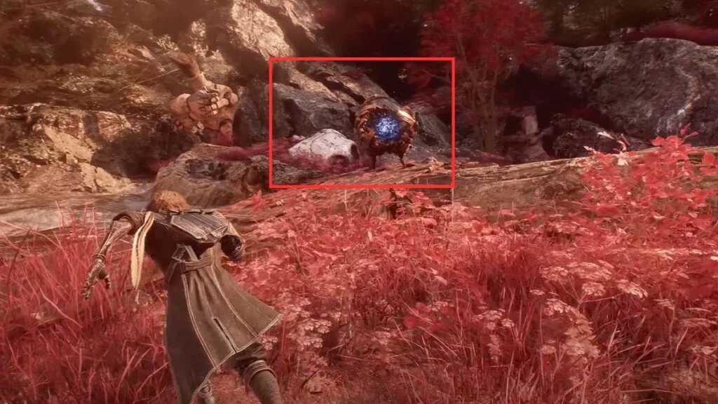 When the opening cutscene ends, walk forward, and you will see an Expedition Flag right in front of you. Rest at it. Just behind the flag is a Petank, which looks like a broken mechanical ball with blue light and two tiny legs. You will find a lot of these in the coming chapters. Once you get towards it, it will try to run away when you get close.