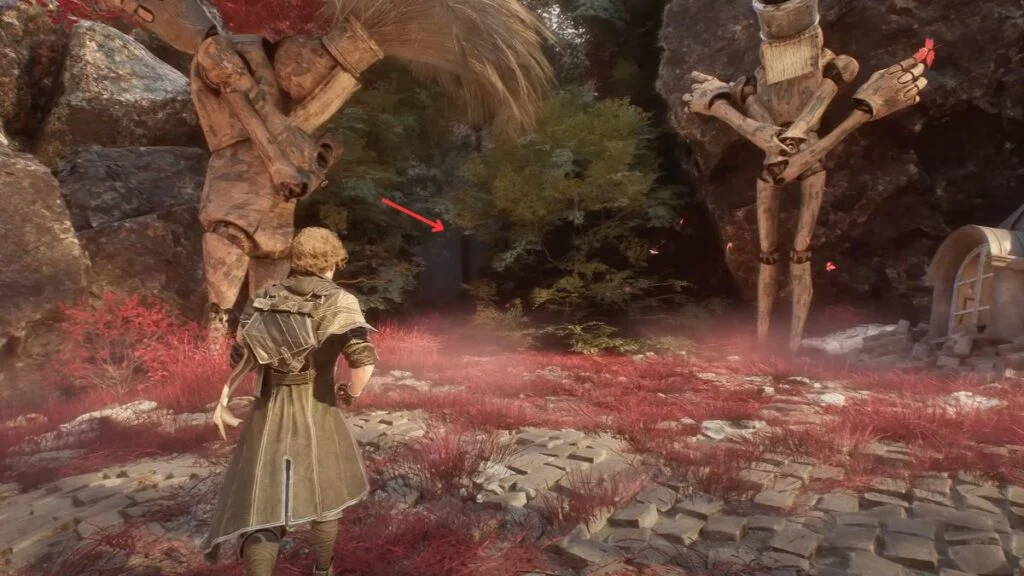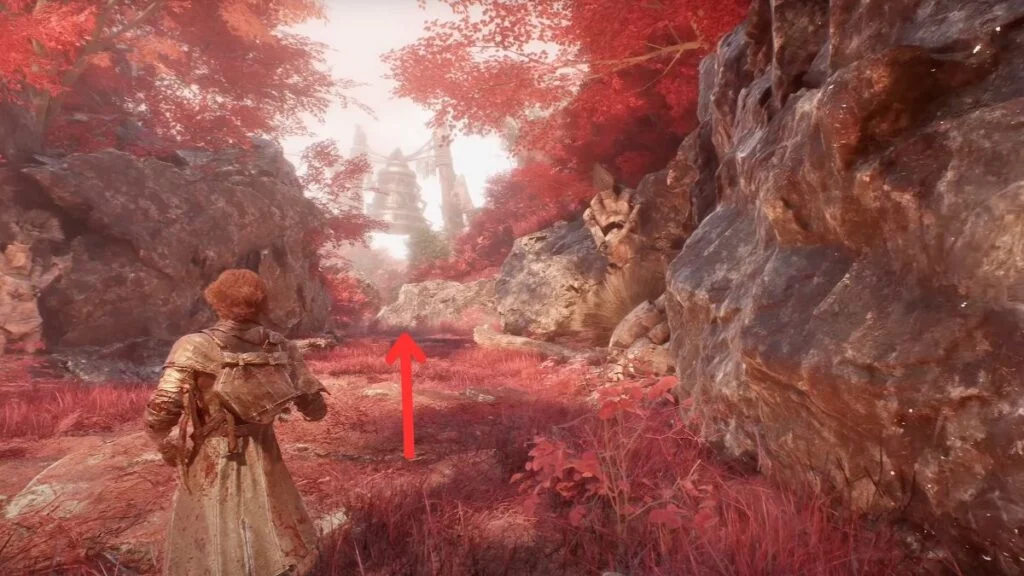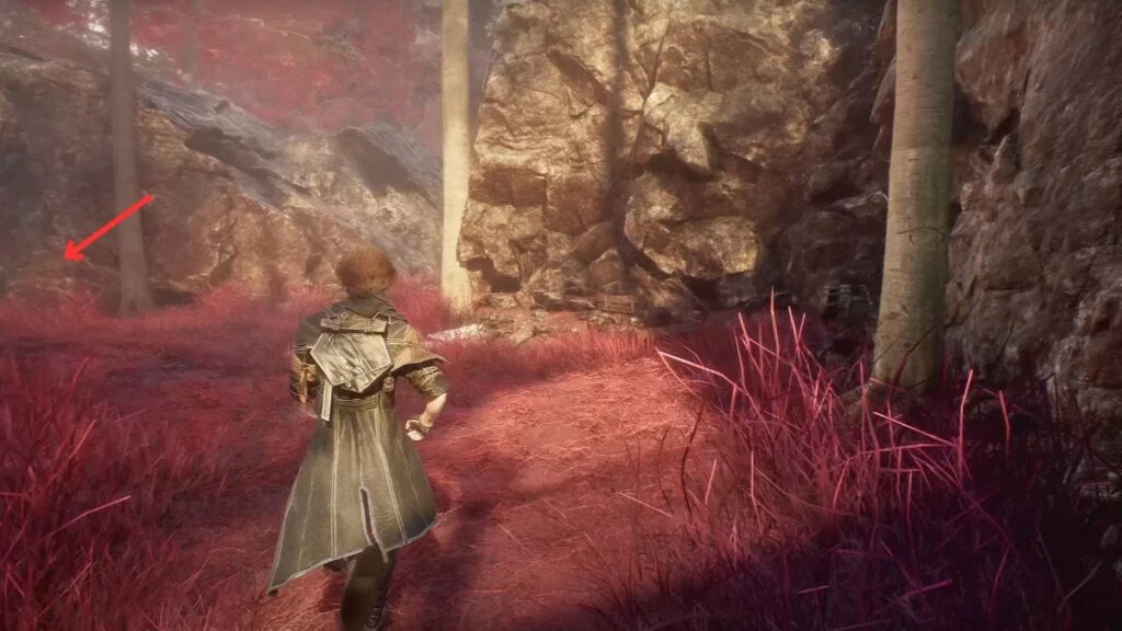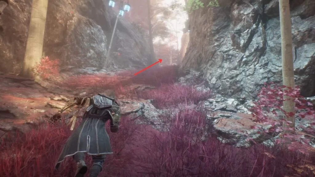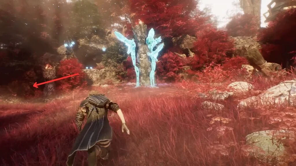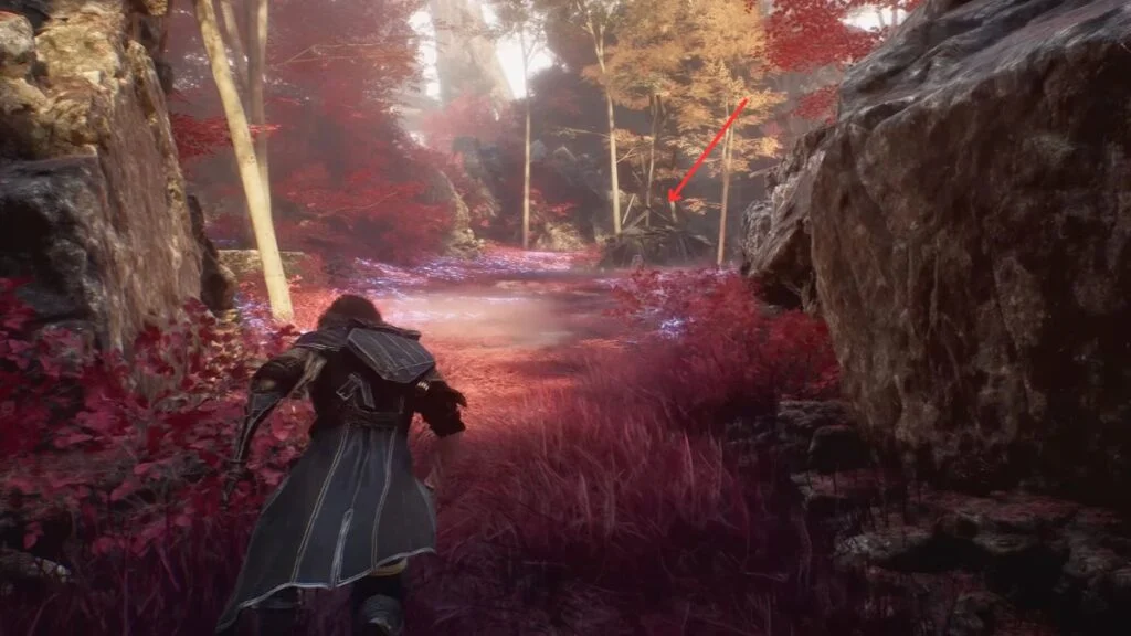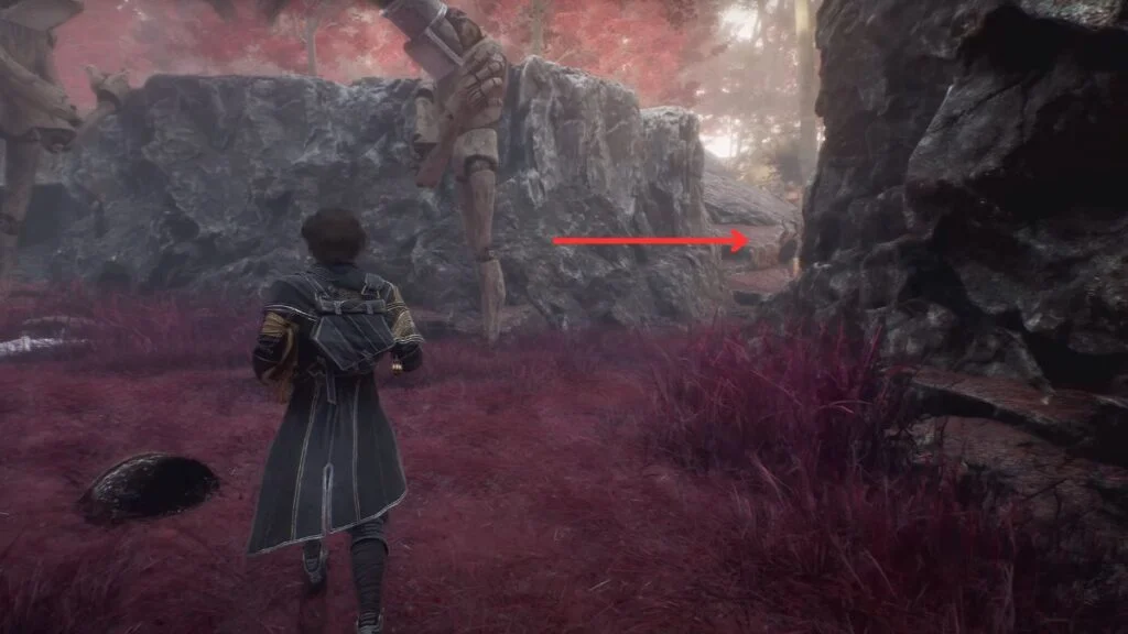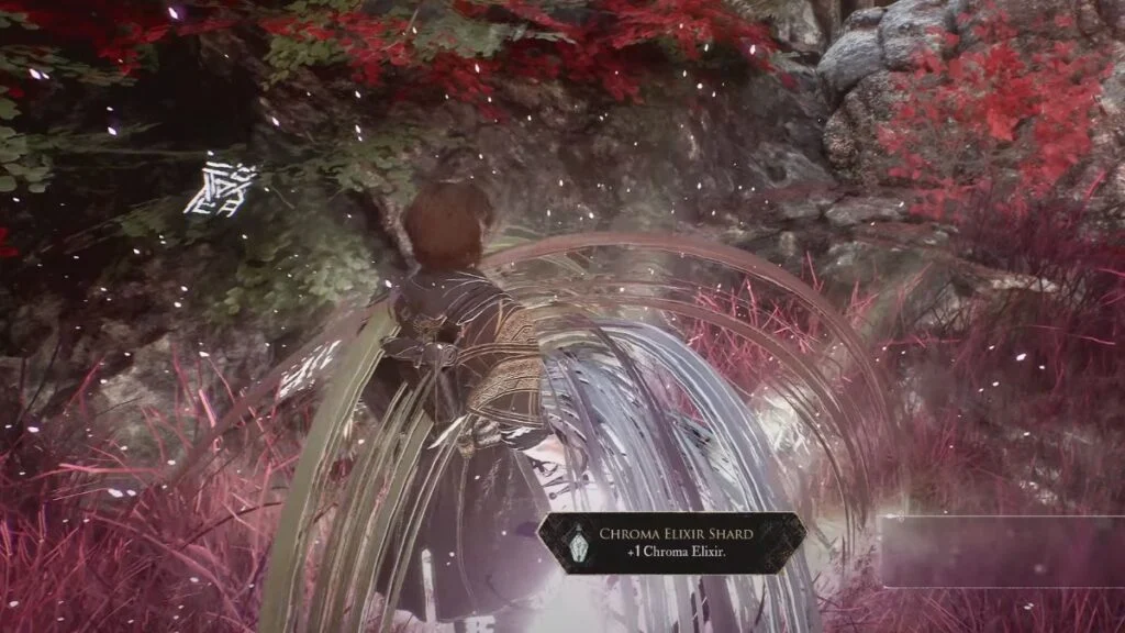 Keep following the main path. At some point, Lune and Maelle will have a short conversation about the area. Keep going after that. When the path splits, take the first left and then turn right. Walk along and on the left you will find a Healing Tint Shard sitting under a statue.