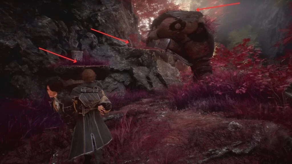 Keep going until you find a cave on the right side. Go in. There are three paths inside. The right one is blocked, so ignore it. Take the far left path where a Catapult Sakapatate is guarding the Attack Lifesteal Pictos. Defeat the enemy and pick it up.
