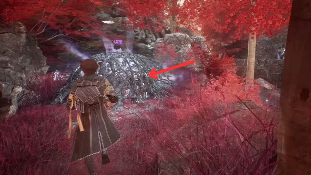 This area can only be accessed after Act 2. Go back to the area where you first fought the Ranged Sakapatate after Expedition Flag 63. You will see blue cracked rocks on the wall. Press R1 to use Paint Break on them. Once they are broken, look to the left for an interaction prompt and press Square.