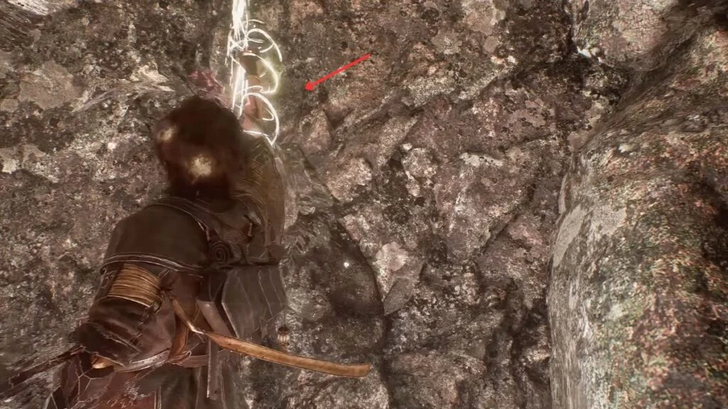 After grabbing the Pictos, take the path straight ahead and follow it until you see a glowing golden rope in the dark. Climb up to reach a Colour of Lumina at the top. Jump off the ledge after collecting it and you will land back near the entrance area.