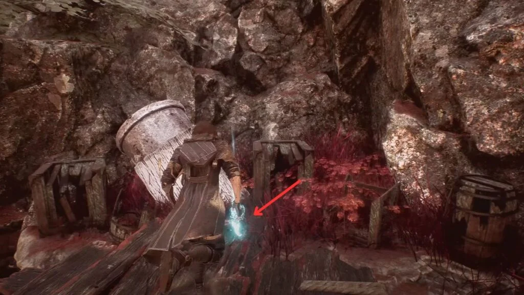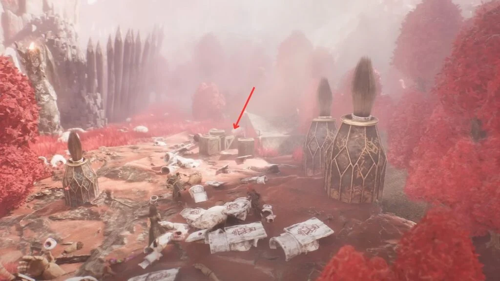 Take the left one first. There is a wooden structure with a Revive Tint Shard inside it.