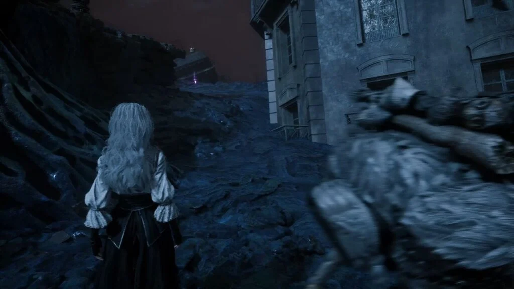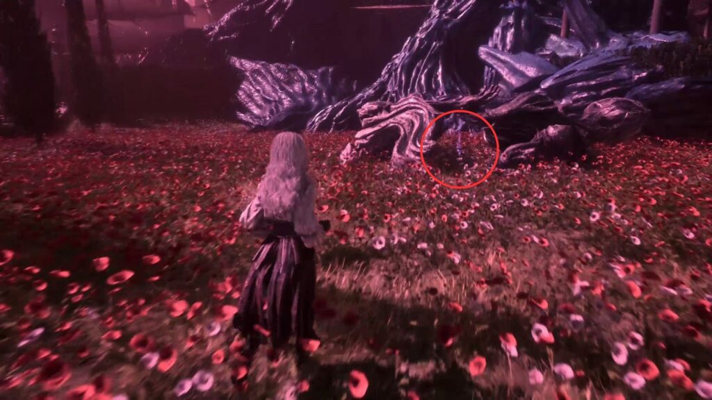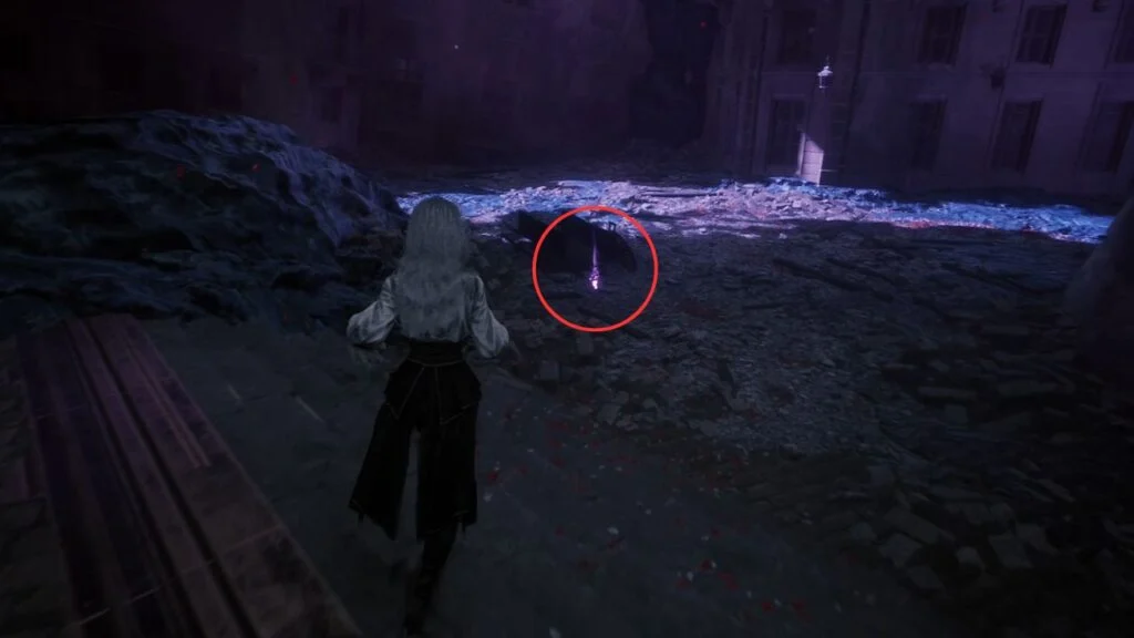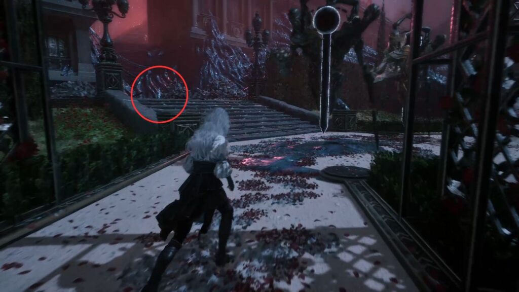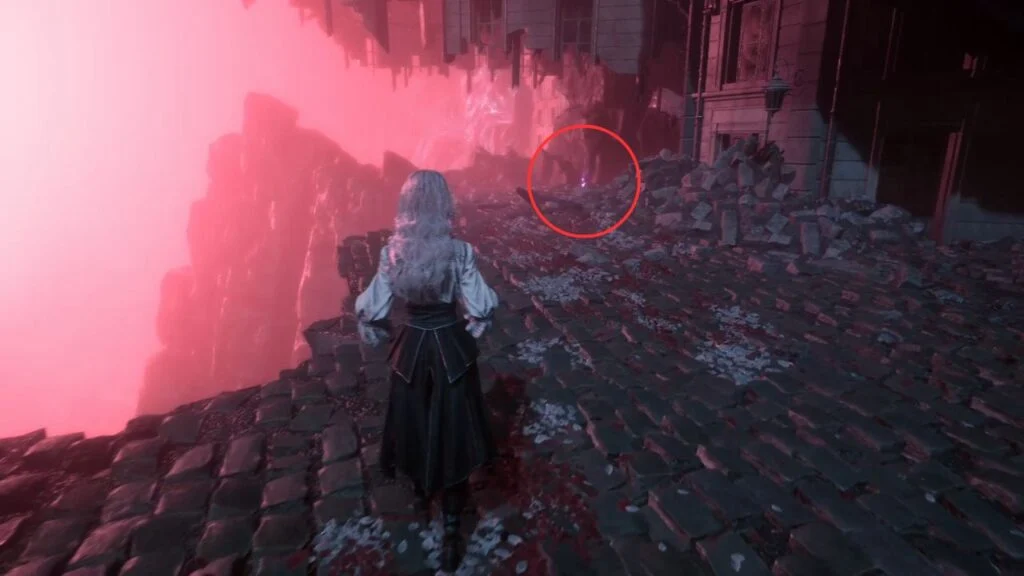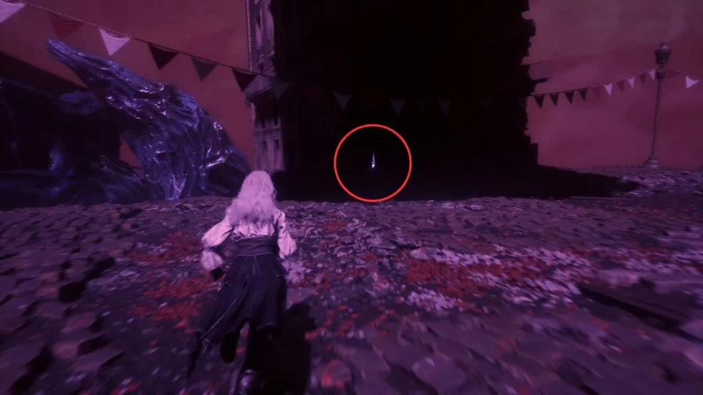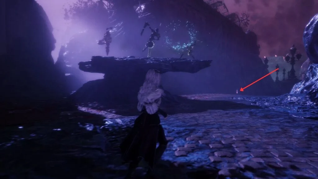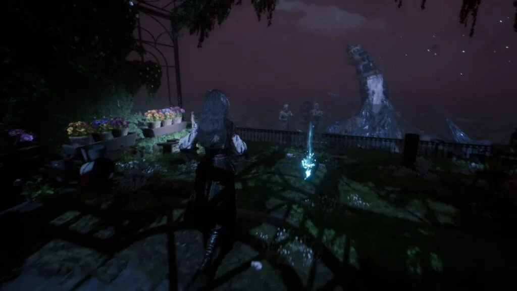 Go back down and proceed through the left arch. Find the statue in the middle of the garden on the right, there’s a Recoat behind it. Continue along the path. Three Aberrations spawn on the left, kill them, and grab the Colour of Lumina they were guarding.