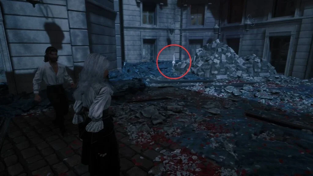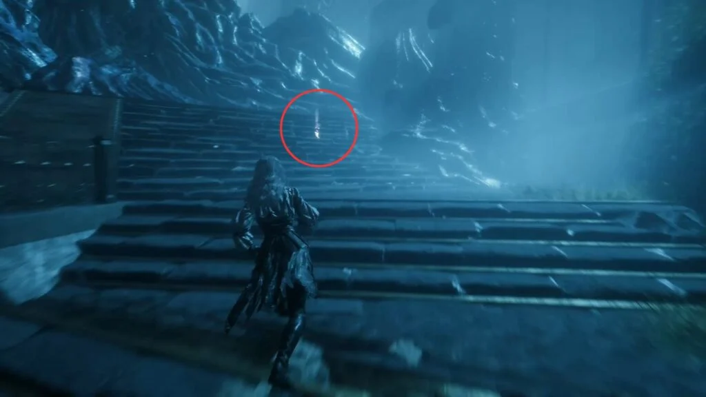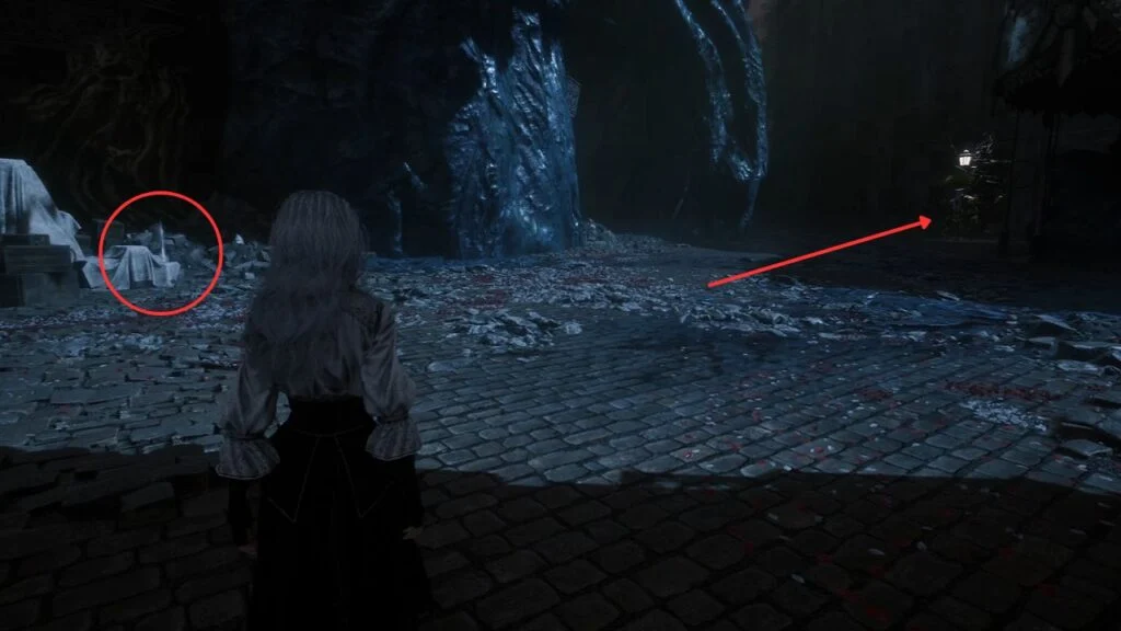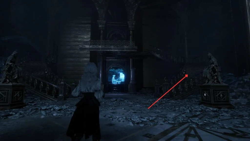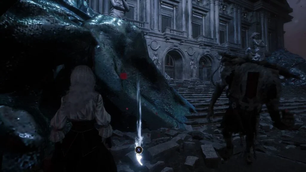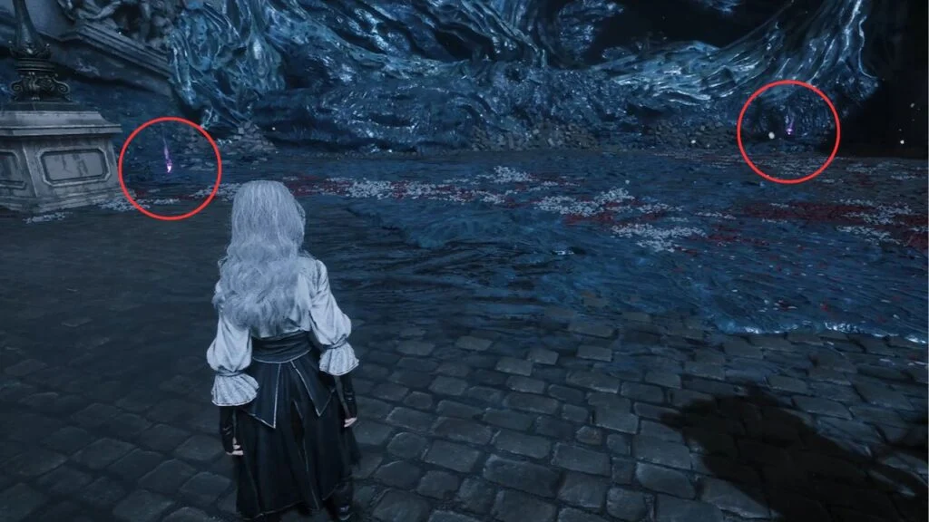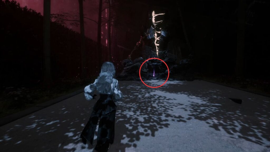 Go back down and proceed through the left arch. Find the statue in the middle of the garden on the right, there’s a Recoat behind it. Continue along the path. Three Aberrations spawn on the left, kill them, and grab the Colour of Lumina they were guarding.