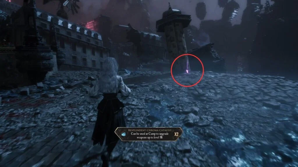 From where you dropped down, go left for a Colour of Lumina and right for another Colour of Lumina. Follow the street leading out of the area and defeat the group of enemies on the right to get another Resplendent Chroma Catalyst.