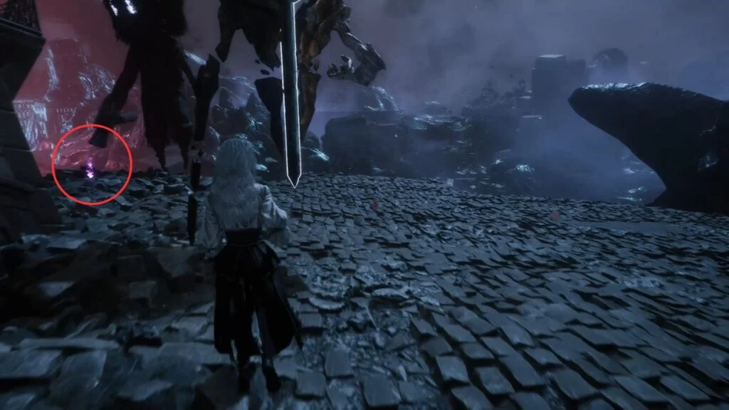 Cross to the other side and take the right stairs down. At the bottom, look left at the fallen statue for a Recoat. Defeat the nearby enemies and look for Chroma x2,450 on the platform behind them.