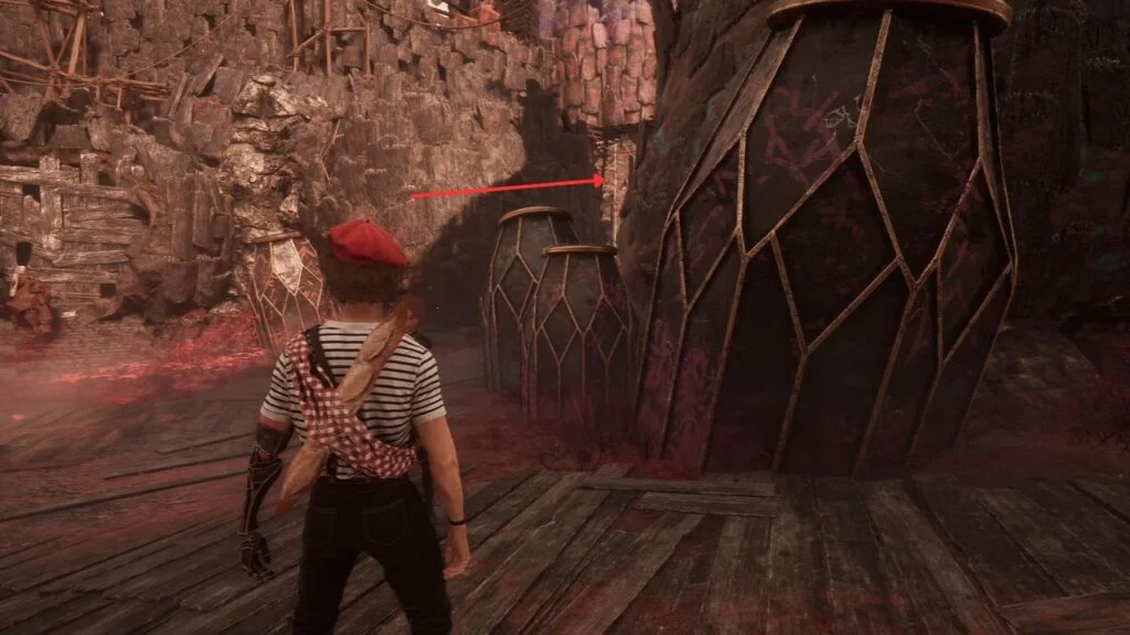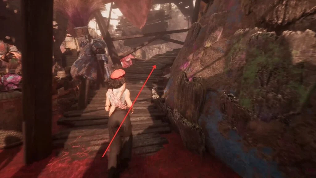 Back out of the alley, look for a wooden path heading upward, right behind Berrami. Follow it to the end, break any boxes blocking the way with free aim shots, and collect Chroma x610.