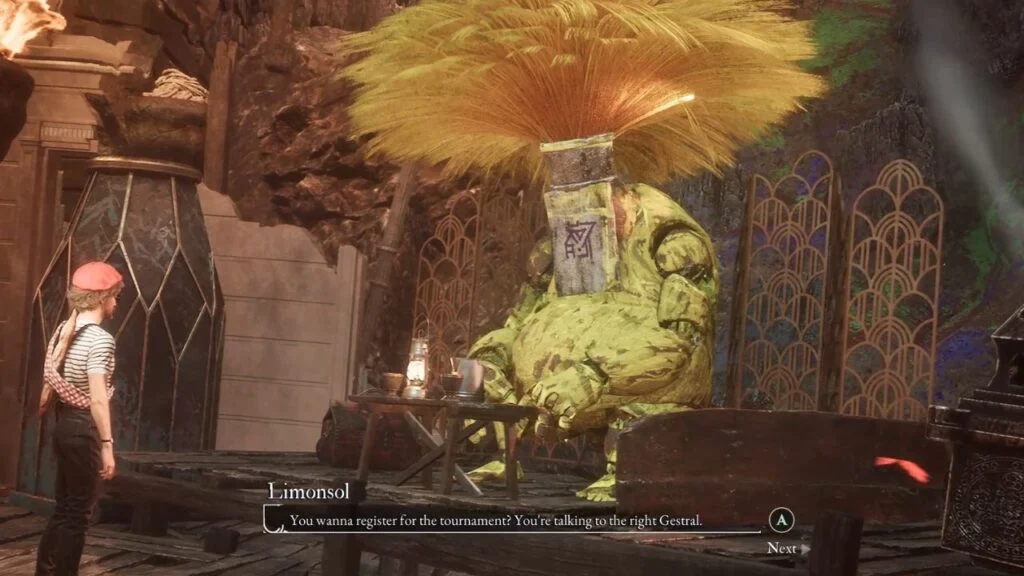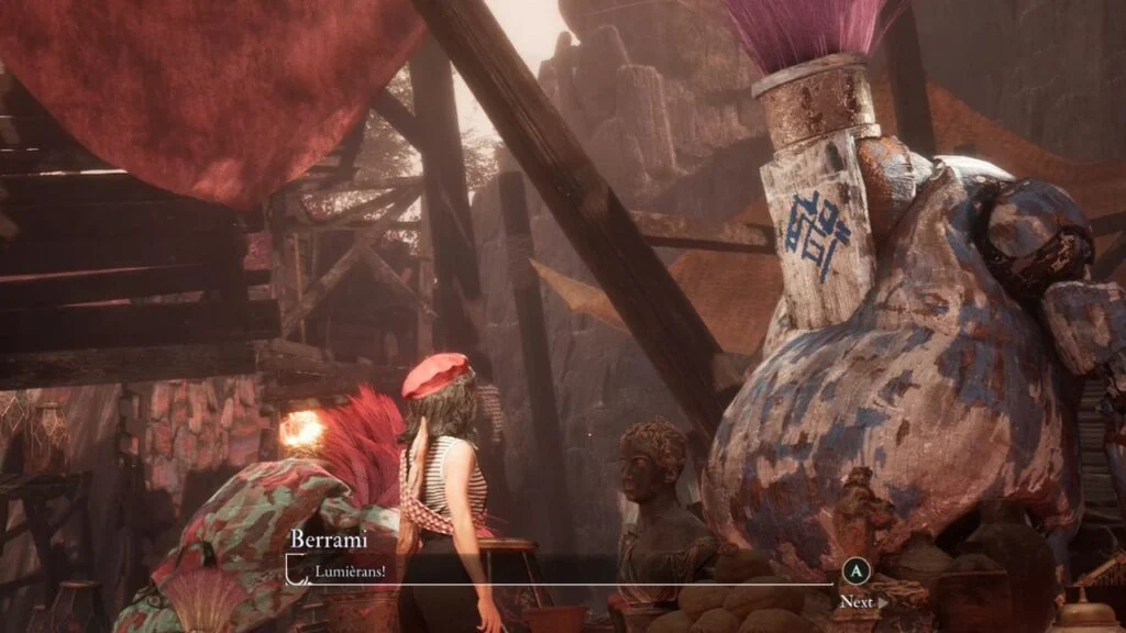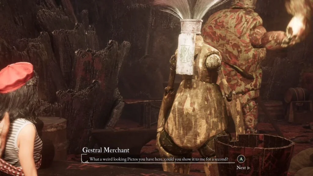 Talk to the Gestrals around the stage for some genuinely funny conversations. You’ll also find Alexcyclo, a Gestral Merchant here who sells exclusive items that unlock once you get another Expeditioner later in the game.
