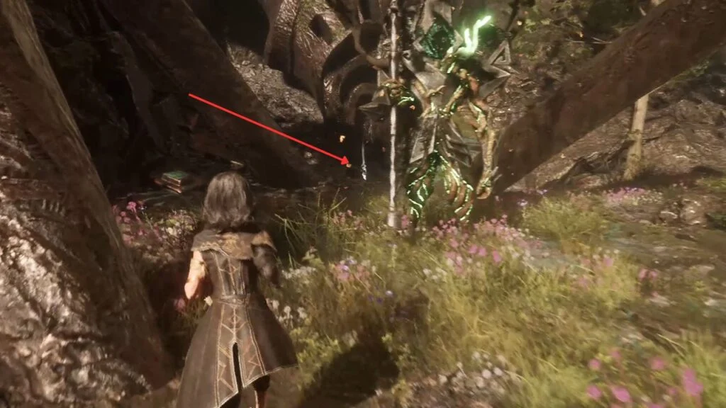 Exit the cave and follow the path until you pass under a huge tree root. You’ll hit your first Expedition Flag: Meadows Corridor.