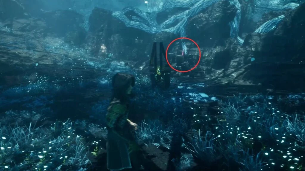 When you first arrive, turn around before following the path. There’s a Chroma x180 near the waterfall behind you. Chroma is used for upgrades later, so grab everything you see.