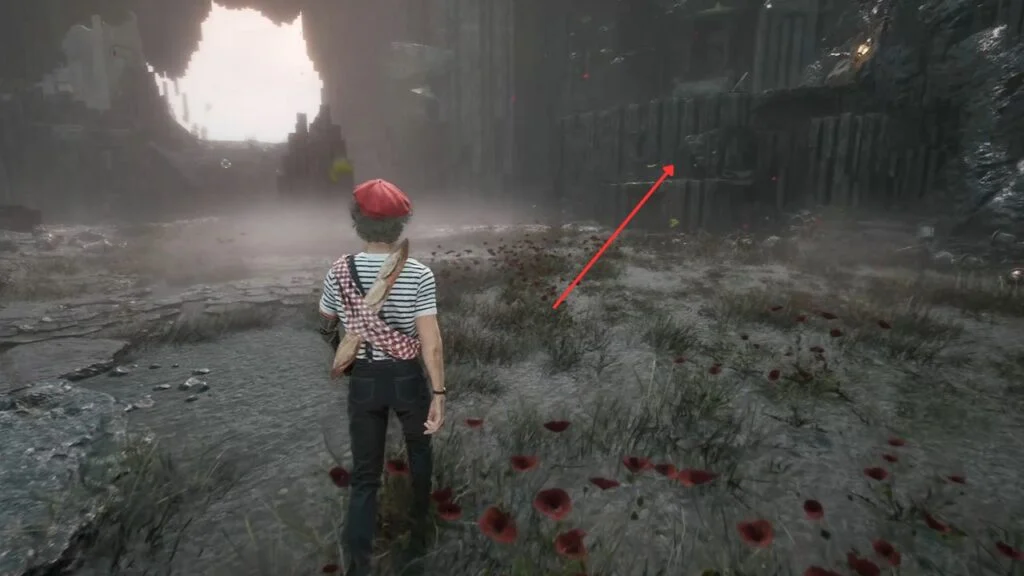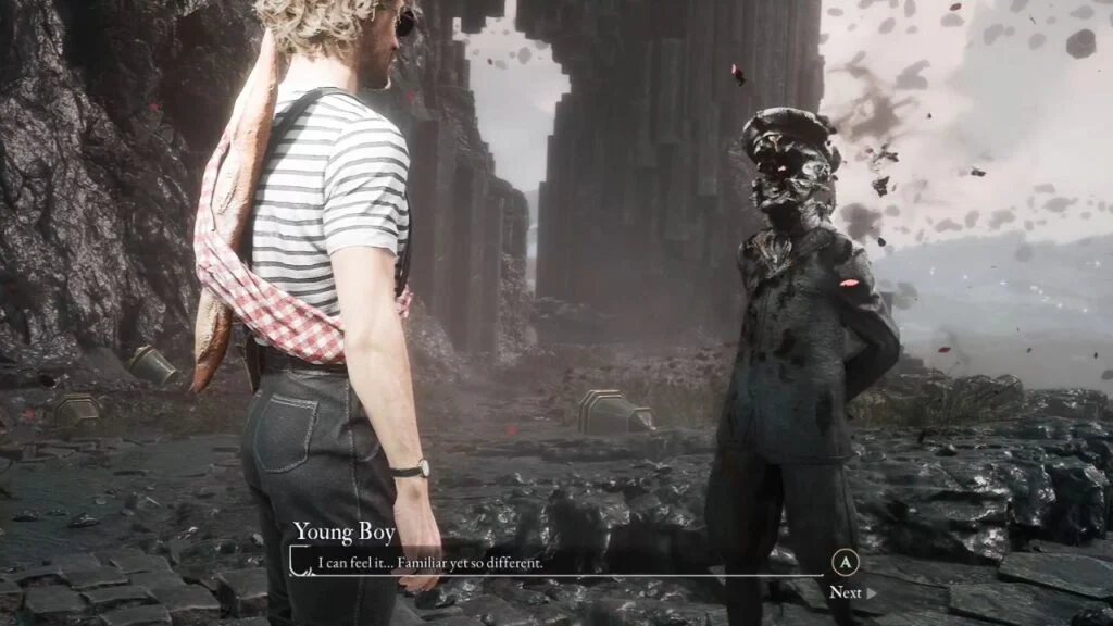 Head back down and use the grapple point to cross the gap. Pick up Chroma x790 on the right, then speak with the shade of the Young Boy for some story development. Continue left to find Expedition Flag: Paintress Shrine.