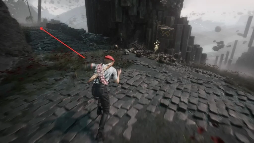 Cross the bridge and defeat the Greatsword Cultists blocking the way. After the fight, look left to find a gazebo with a Colour of Lumina inside. Before taking the main path, check the right side for climbable ledges. Get up there, kill the enemy, and grab Pictos – First Strike behind it.