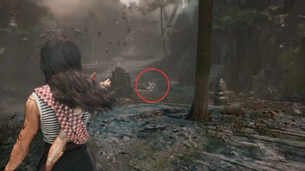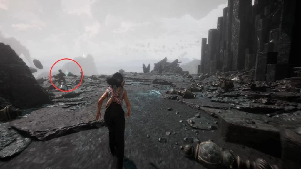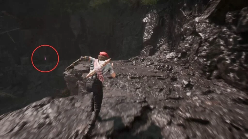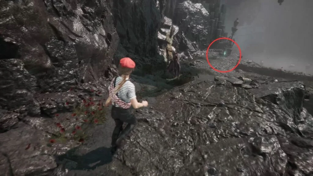 From the flag, turn left and defeat the two Rocher enemies. They’re guarding a Healing Tint Shard, take it before heading back. Return to the flag and head down the main path.