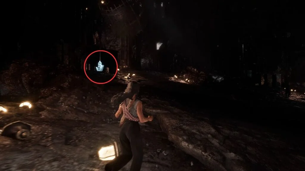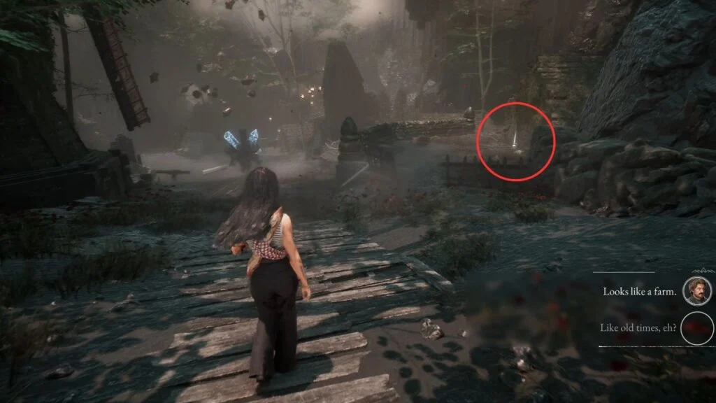 Drop down and continue through the lantern-lit tunnel. Grapple across the gap, pick up Chroma x790 on the right, and use the magic rope to reach the ledge above. Follow the path and activate Expedition Flag: Old Farm.