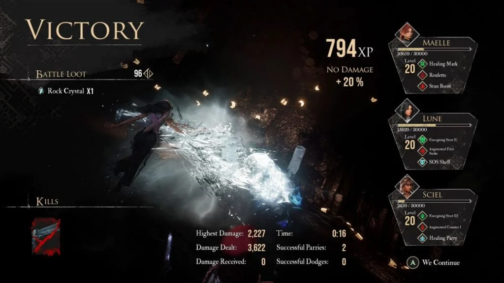 Apply Mark whenever you can and prioritize parries and counterattacks. Lune’s Ice Lance slows the boss. With Sciel, get into Twilight Mode and stack 20 Foretells before using Phantom Blade. Maelle’s physical damage is strong here, especially with Mark applied.