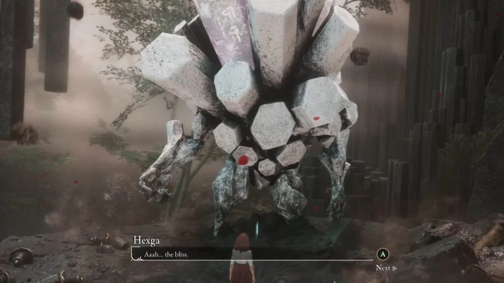 Now go back and fight the Hexga. It hits hard, but its attack patterns are readable. After defeating it, you get Pictos – Confident. Before moving on, check inside the wreckage of what looks like Expedition 78’s airship for Pictos – Breaking Counter.