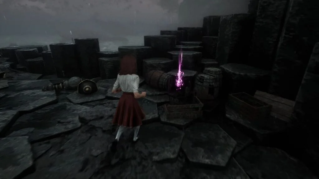 Climb back up and continue along the path, taking down a Greatsword Cultist along the way. At the end, collect the Recoat and interact with the ripple to create a new shortcut.