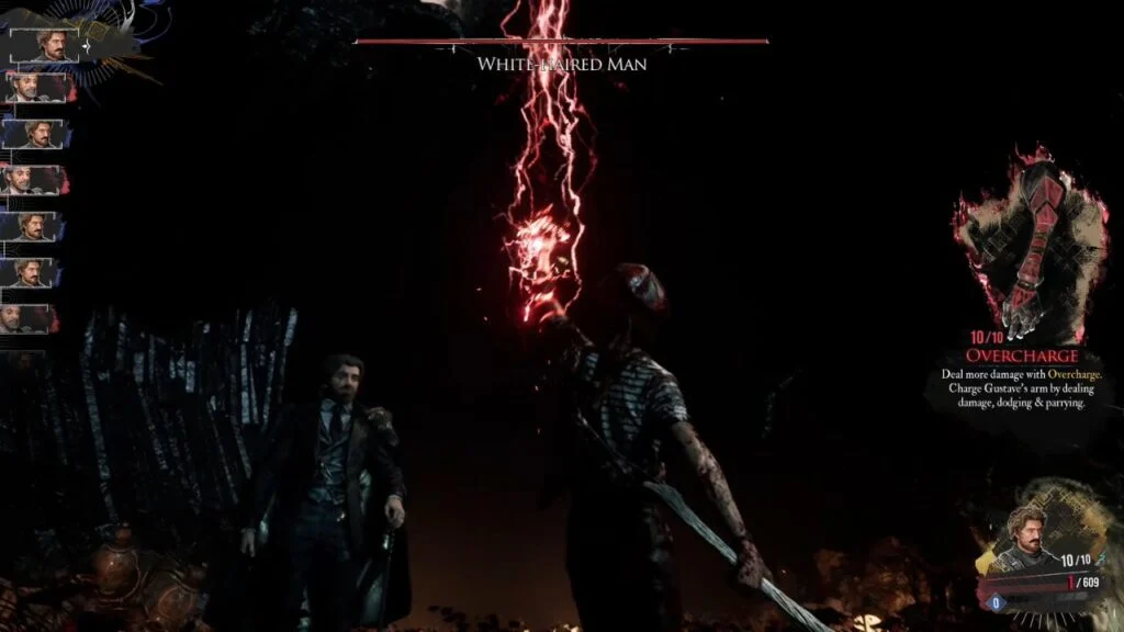 You finally fight the mysterious White-Haired Man directly. The fight is straightforward, he won’t attack you, and your damage against him is minimal. Just keep hitting him until the Overcharge meter is fully charged, then activate Overcharge to end the fight.