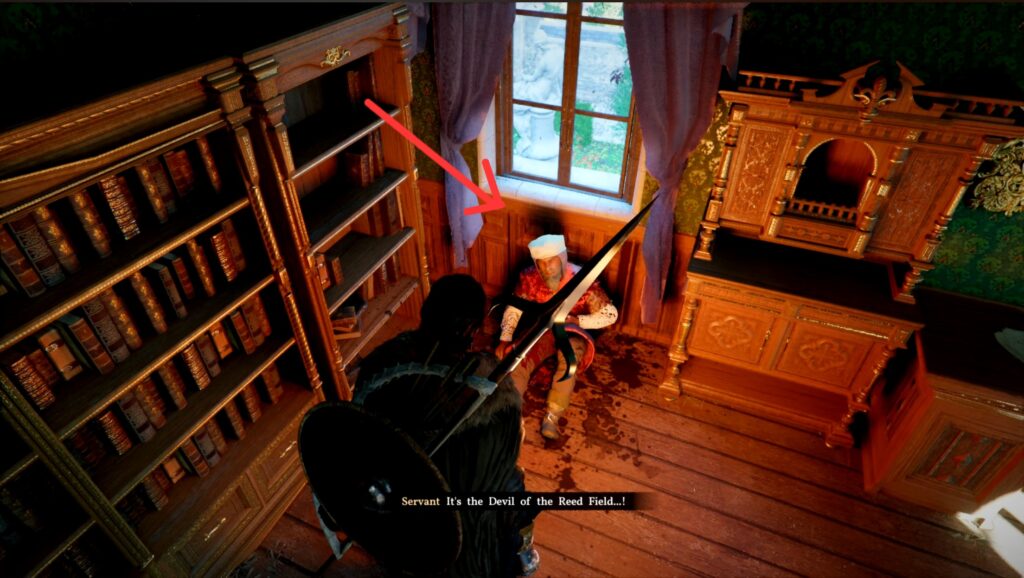 Upon arriving, you have to fight off an ambush. Then, you need to investigate the area to see what’s going on. If you feel like exploring, you can pillage the mansion freely with nobody around to see you! You might just find some interesting things inside… Once you’re ready, head upstairs and talk to the only living person in the building.