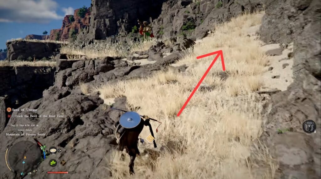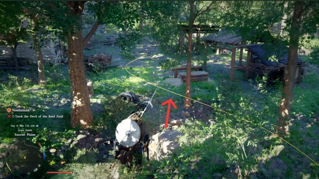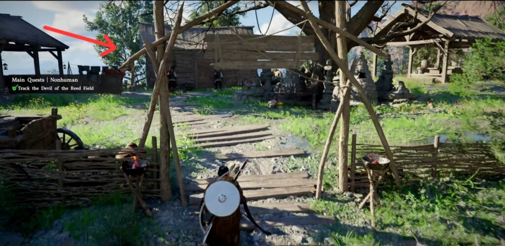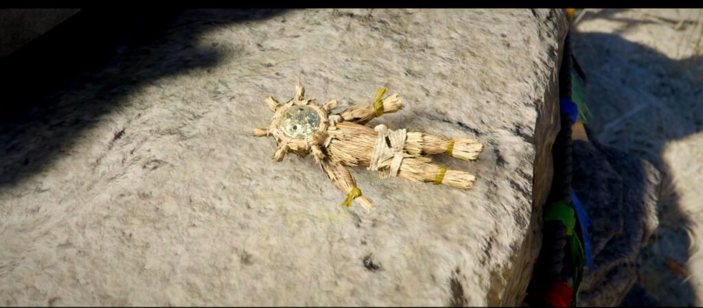 Once you arrive at the reed field, there is a small campsite so you can cook and repair your weapons before the fight. When you’re ready, pick up the doll at the marked area, then inspect it to start the fight.