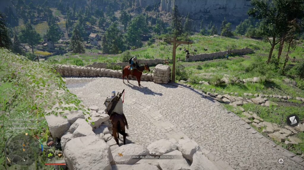 After your chat, head to see the Marquis about your reward for killing Hornsplitter. He sets you up with a property for you and your fellow Graymanes to gather and shelter. Afterwards, you can ride your horse with the guard who escorts you to your new homestead.