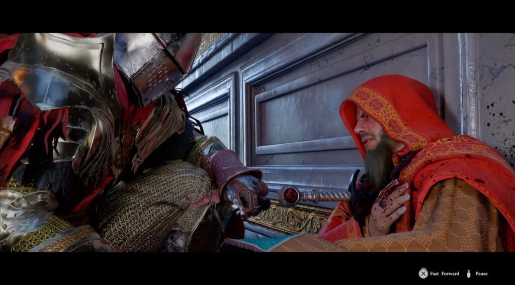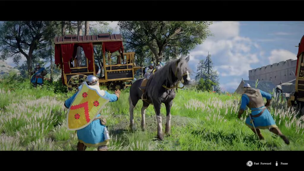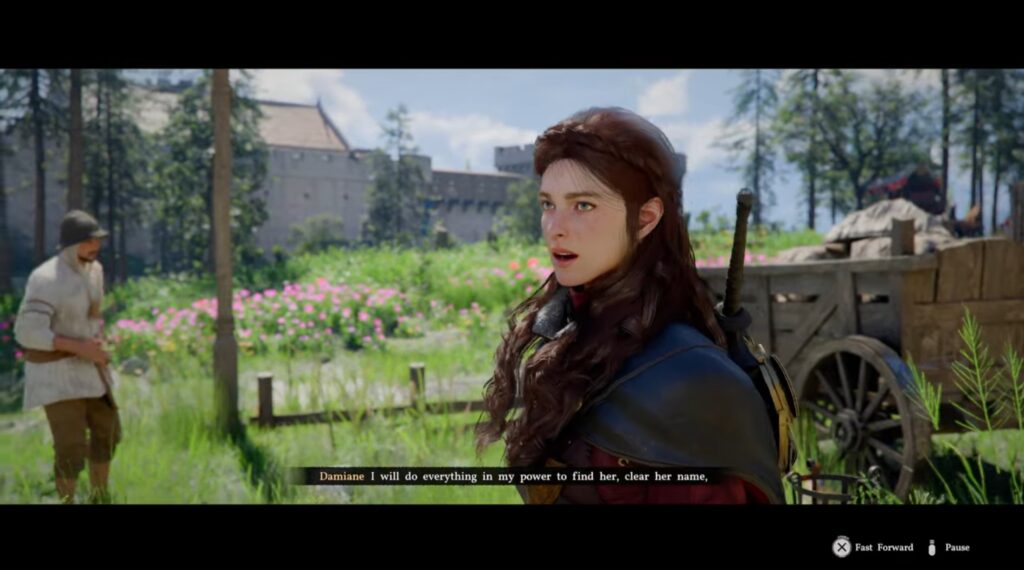Deliver the horse back to the stable to meet up with Damiane. You will next be sent into the castle for the banquet.