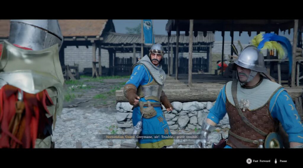 The chapter begins by sending you to the harvest festival in Hernand, detailed on the invitation you are given. Head to the castle to find some struggling guards.