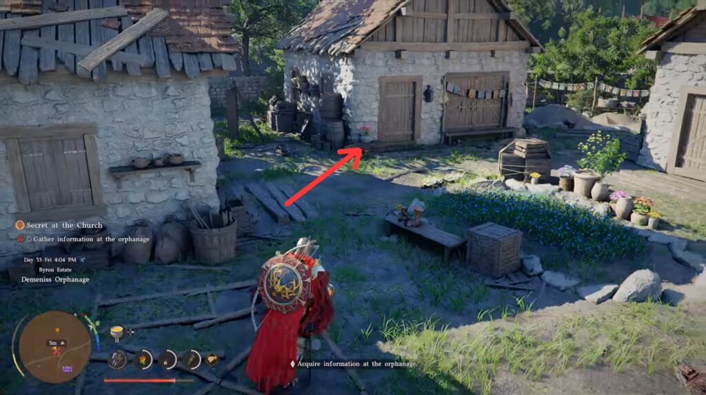 After a quick fight, he retreats, leaving you to investigate the massacred orphanage. While it isn’t super clear, you just need to enter this specific building. If a cut scene immediately begins when entering, it’s the right building.