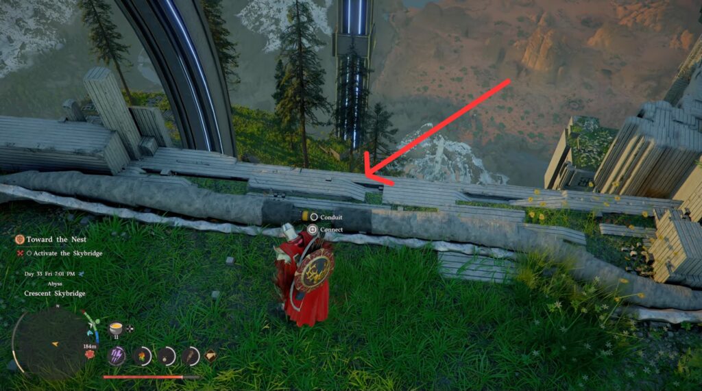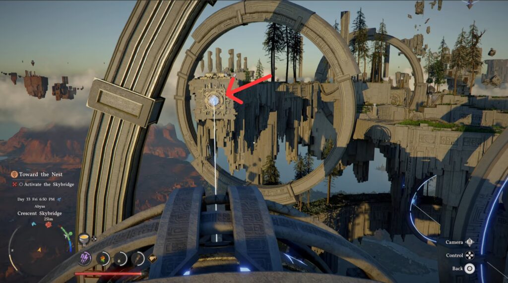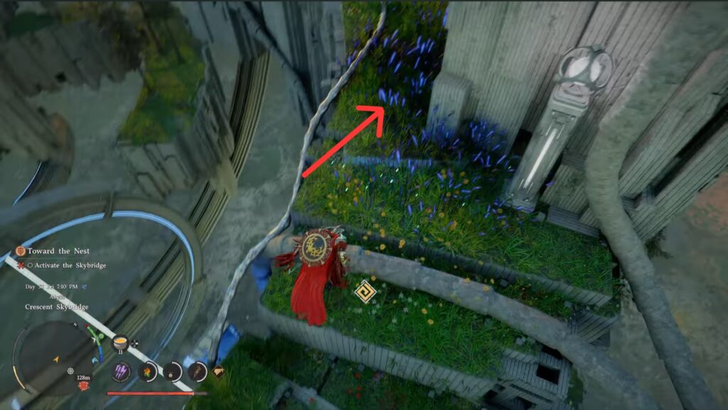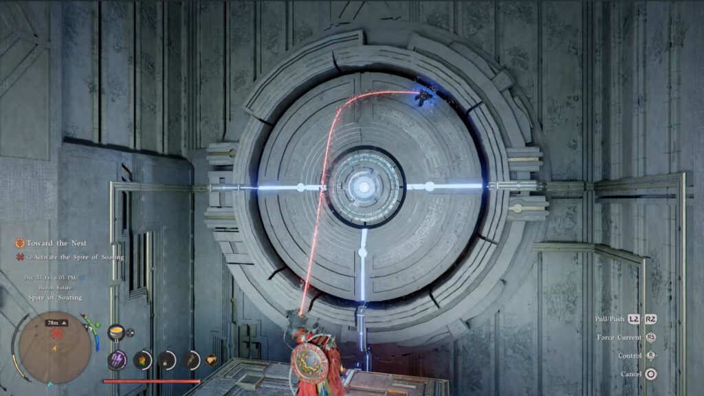 Finally, you can climb on the big button and smack it. Finish climbing up and grab a little reward for your trouble. Next, head to the marked pedestal. Grapple and rotate it like the previous ones you’ve done to create a pathway. Head across and activate the fast travel point at the end.