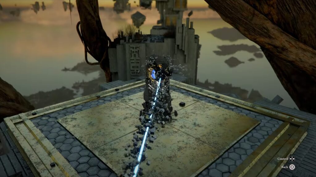 Finishing the puzzle rewards you with a scenic ride on a floating platform up to the Abyss. This takes quite a while, so feel free to go grab a snack or swap to a fully charged controller while you wait. There isn’t anything you have to do immediately once you reach the end.