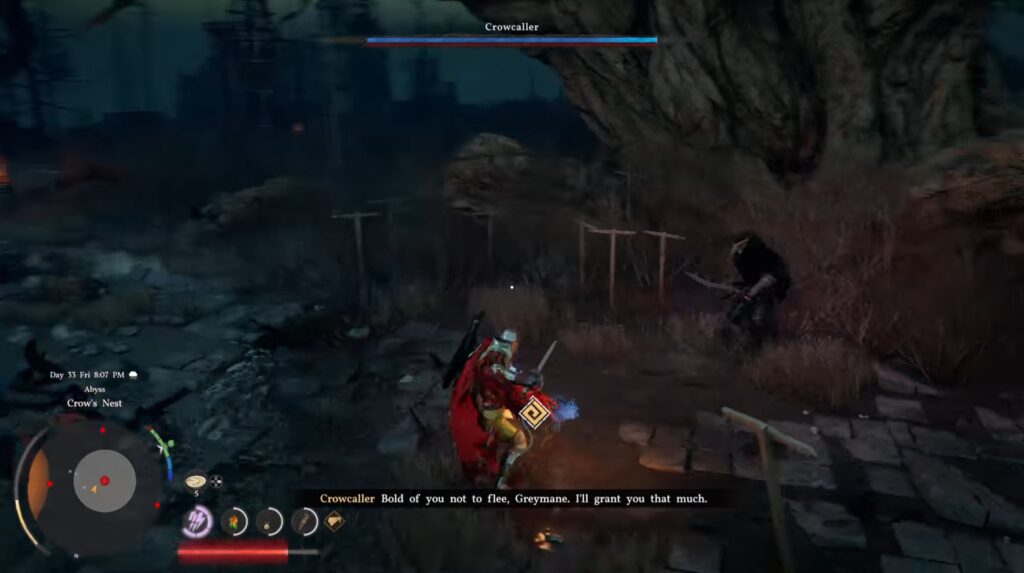 Once you arrive, it’s time to fight yet another group of enemies. Defeating them will bring you to the Crowcaller himself. This isn’t a full fight, though, so don’t worry too much about prepping.