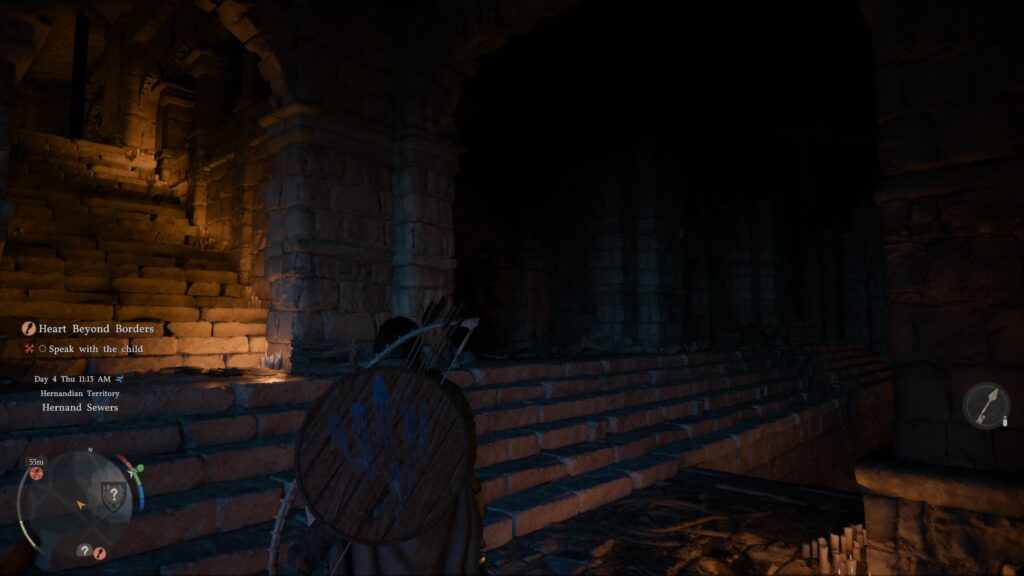 As soon as the scene finishes, stand on top of the sewer hatch that the beggar was previously lying on. It prompts you to open. If you can’t get the prompt to work, adjust your standing until the prompt highlights itself. Afterwards, enter the hatch.