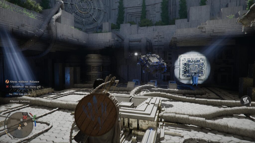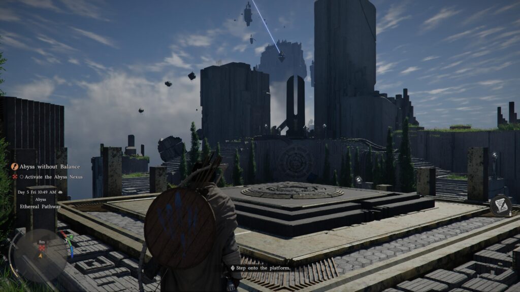 After standing on the platform, you can head towards the small courtyard ahead.