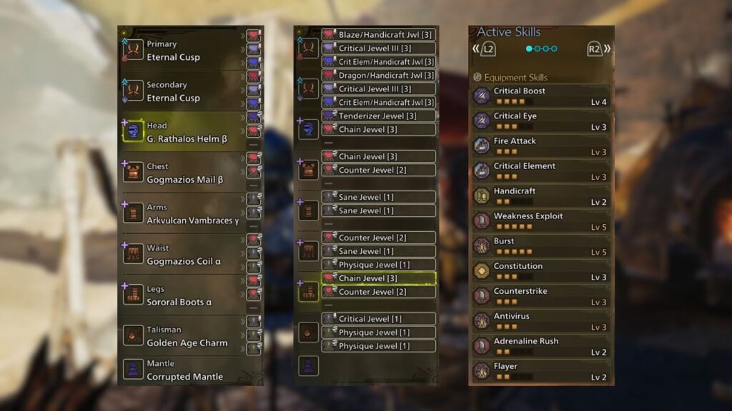 The Gogmartian Dual Blades are once again the weapon of choice, but the required skill for this build is specifically Gogmapocalypse. Make sure to configure a separate skill setup on your Dragon Gogmartian to distinguish it from the one used in the previous elemental build.