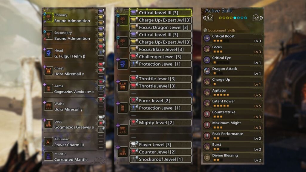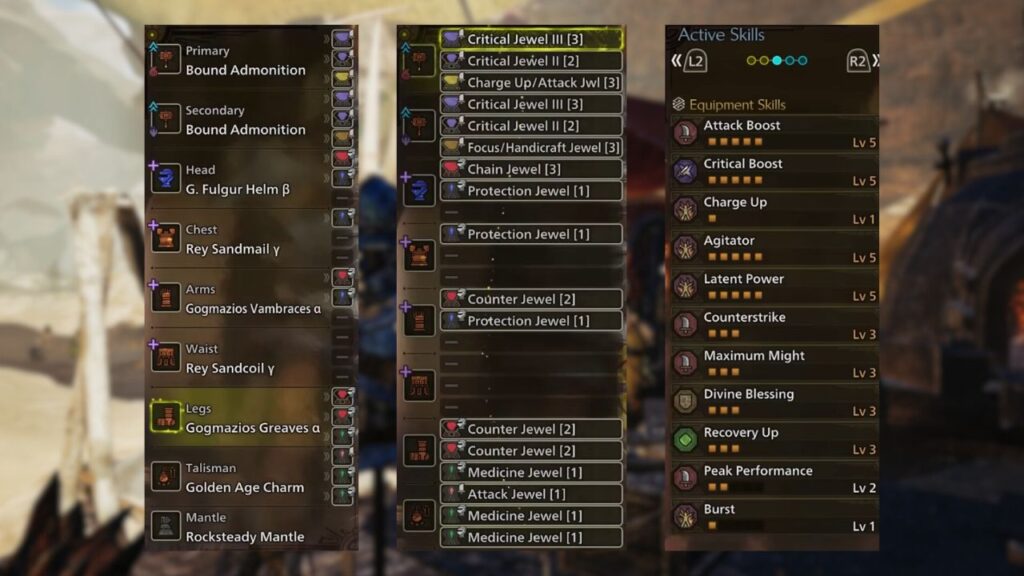 The Gore Magala’s Tyranny skill must be active on your Gogmartian Hammer for this build to function correctly.