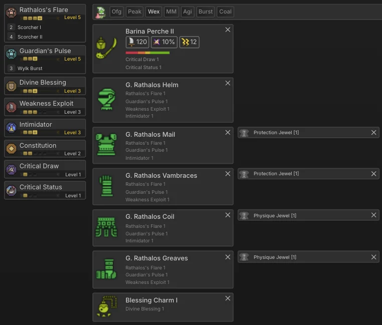 This build trades the Gore set bonus for Latent Power, resulting in higher overall damage output at the cost of being more difficult to craft.