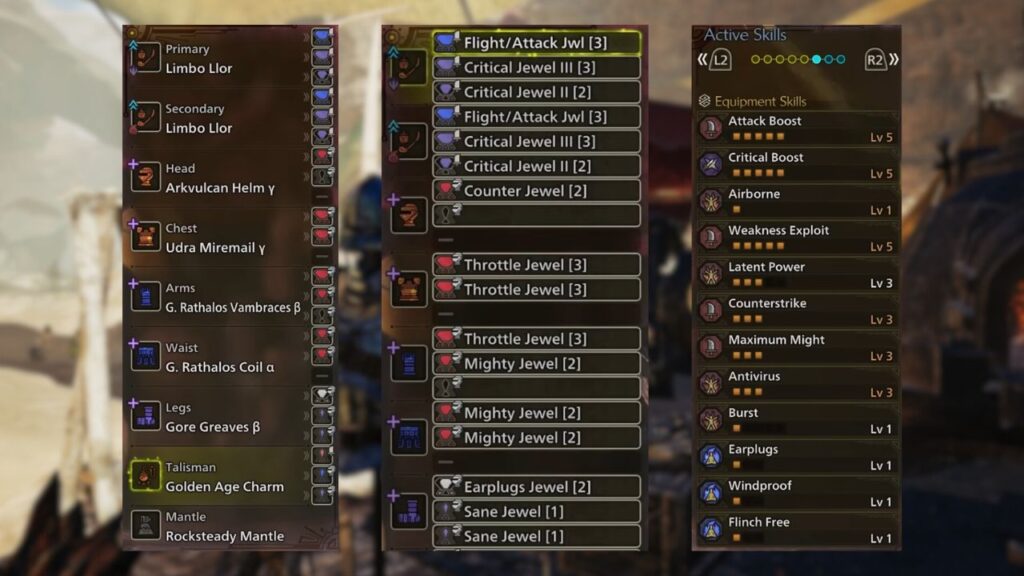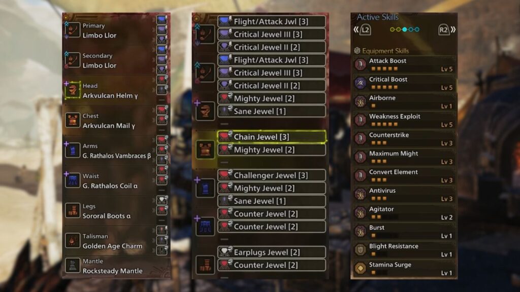 The Fulgur Helm and Gogmazios Vambraces Alpha work together to activate Second Wind, while the Gore Coil combined with the Gore Magala active skill on your Gogmartian weapon activates Black Eclipse.