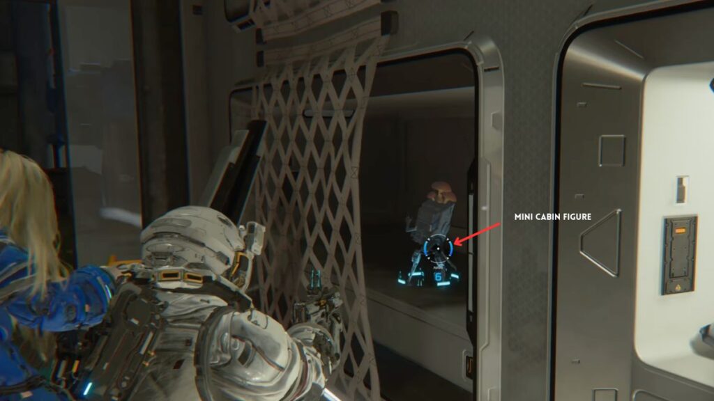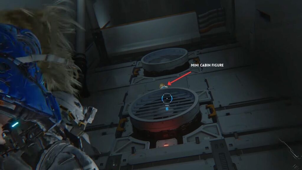 After collecting the Decode node, defeat the Walker you encounter and go through the door. Immediately after entering, look up at the vent fan above you to spot the third Mini Cabin Figure. Shoot it down.