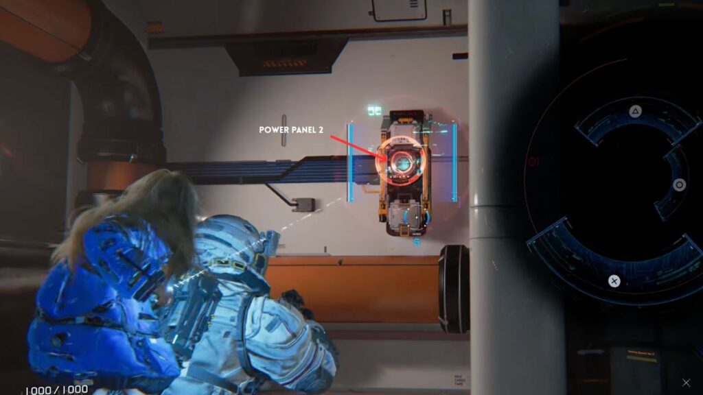 Press Square to scan the area and a pulsating icon will appear nearby marking your next destination. Head toward it and keep moving forward until you reach a terminal. Rotate the circuits to connect them to the center icon to activate the backup generators and bring some light back to the dim corridors.