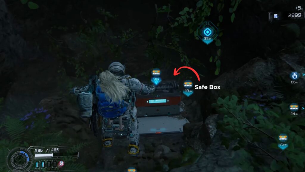 The path here is dim but straightforward. Follow it until a Safe Box comes into view. However, a Creeper is waiting close by to ambush you. Wait for the shimmer, take it down, then claim the three Upgrade Components inside the box.