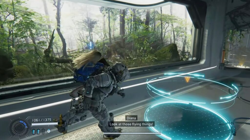 Go through the entrance and head downstairs. At the bottom, activate the circle near the habitat to trigger a short conversation about insects with Diana.