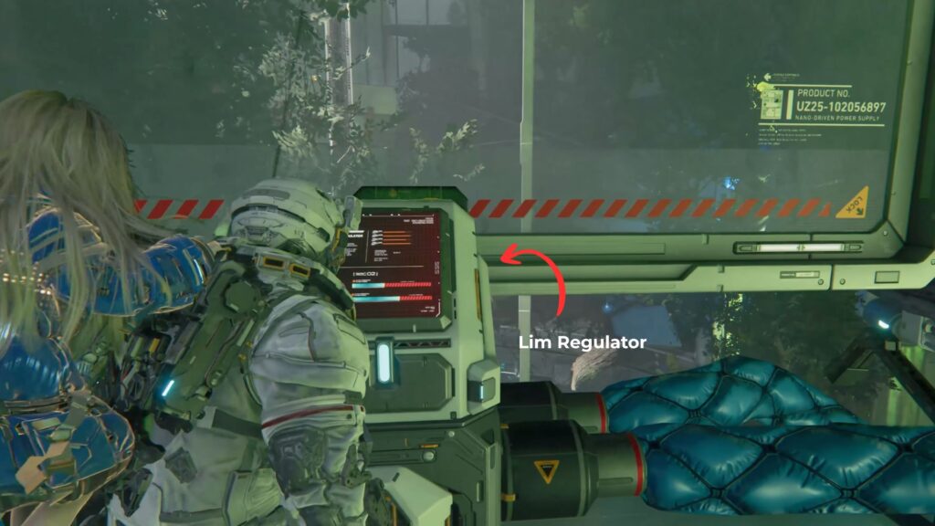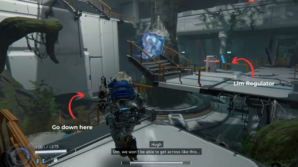 Go up the stairs and stop at the first platform since the rest is broken. There’s a Lim Regulator here, but it isn’t working yet.