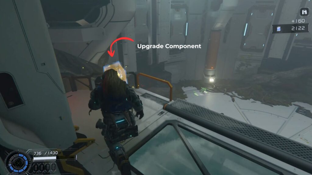 After using the regulator to regrow the branch, cross over it and immediately turn around. You’ll see a broken catwalk along the wall with an Upgrade Component at its far end.