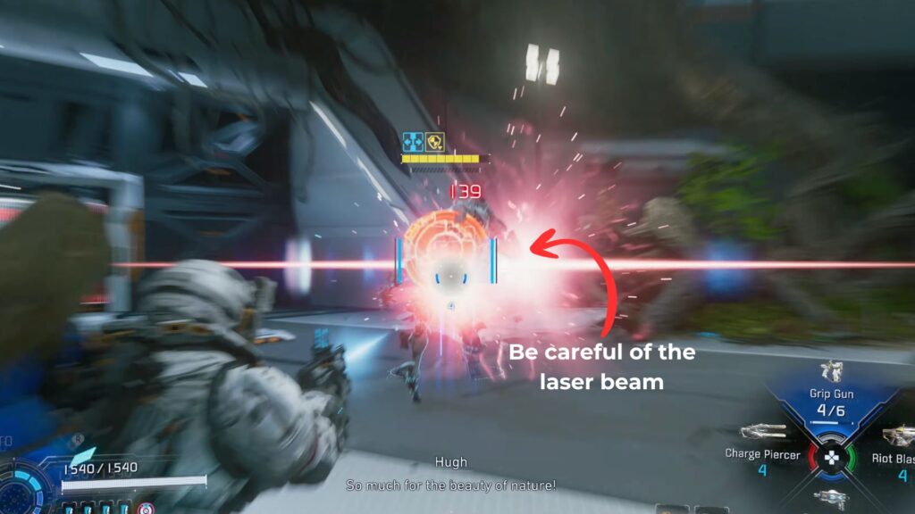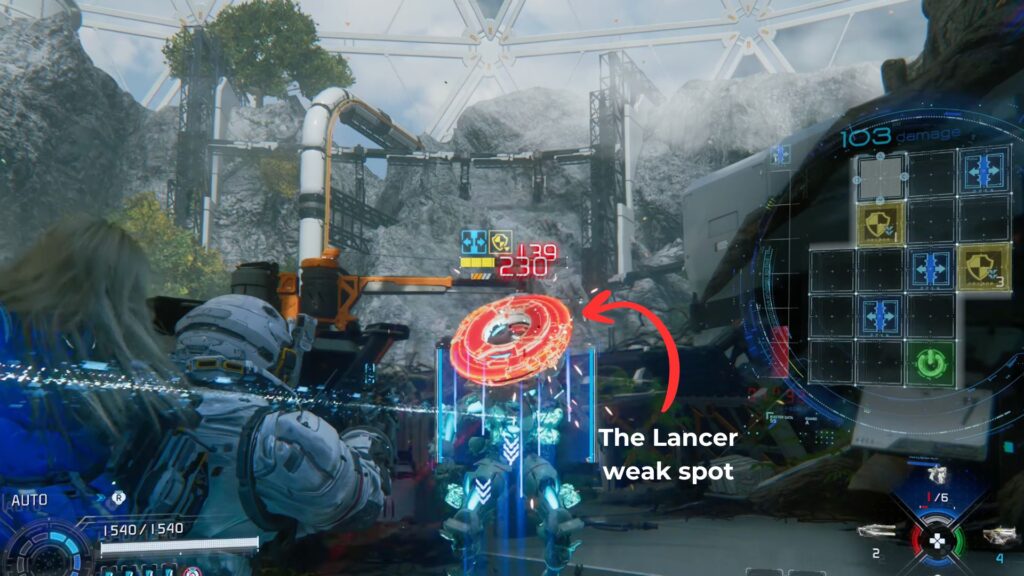 The Lancer deals heavy damage. Its main attack is a charged beam it fires after pulling its arm back. When you see this, dodge before it fires. Hack it to make it vulnerable, then aim for its head.