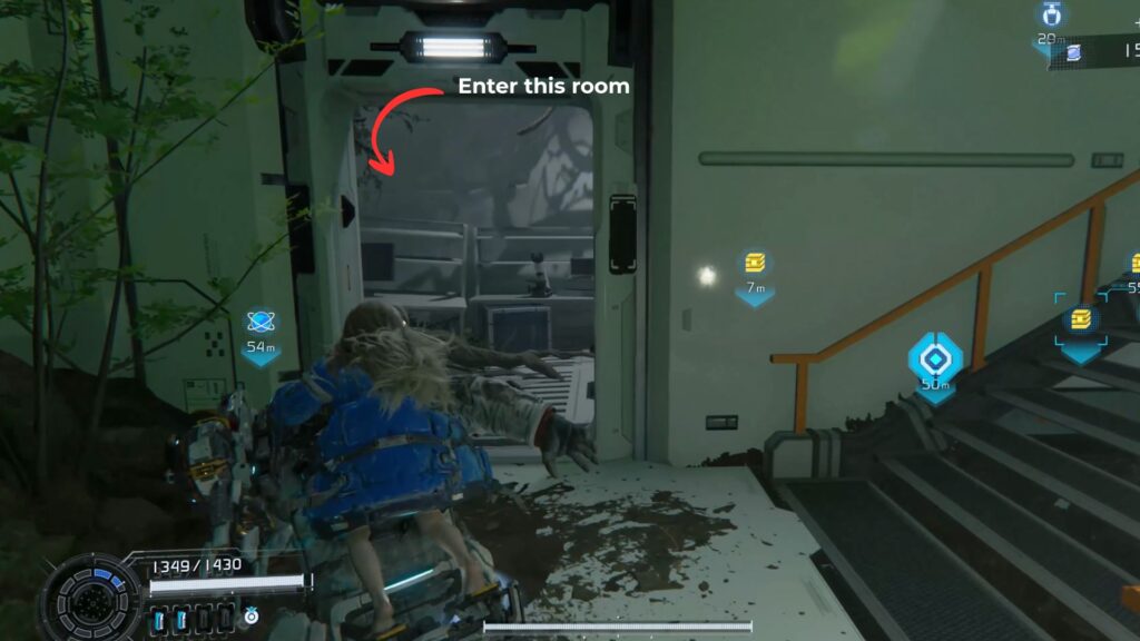 The Plant Factory is made up of yellow challenge rooms. The first one is right through the door ahead. These fights can be tough, so make sure you’re prepared.