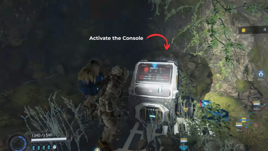 The fourth panel is located at the Bomber’s previous position. Hack it and the sealed door at the cave entrance will unlock.