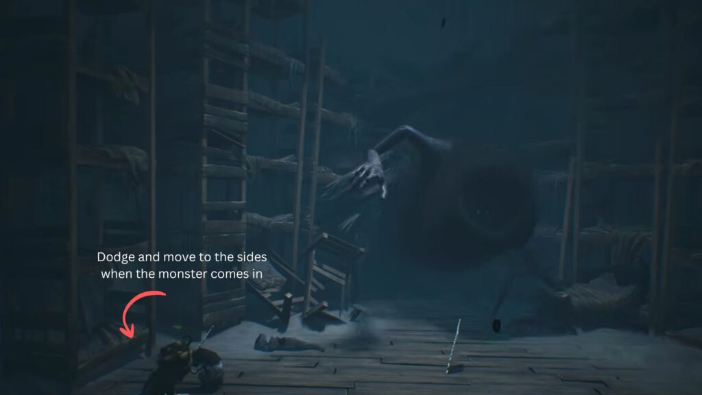 You’ll eventually arrive at a room lined with tall bunk beds. This is where the boss fight takes place.