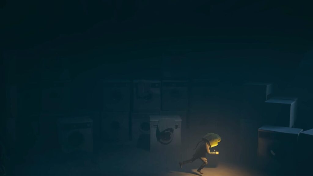 You’ll enter a room packed with washing machines. It’s very dark in here, so light your matchstick to see where you’re going. Keep following the path straight through.