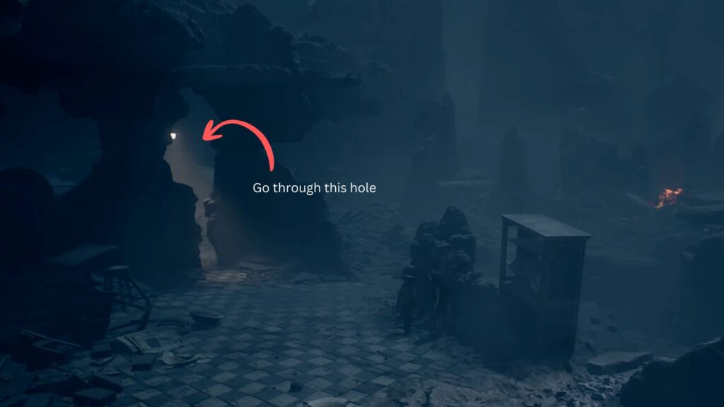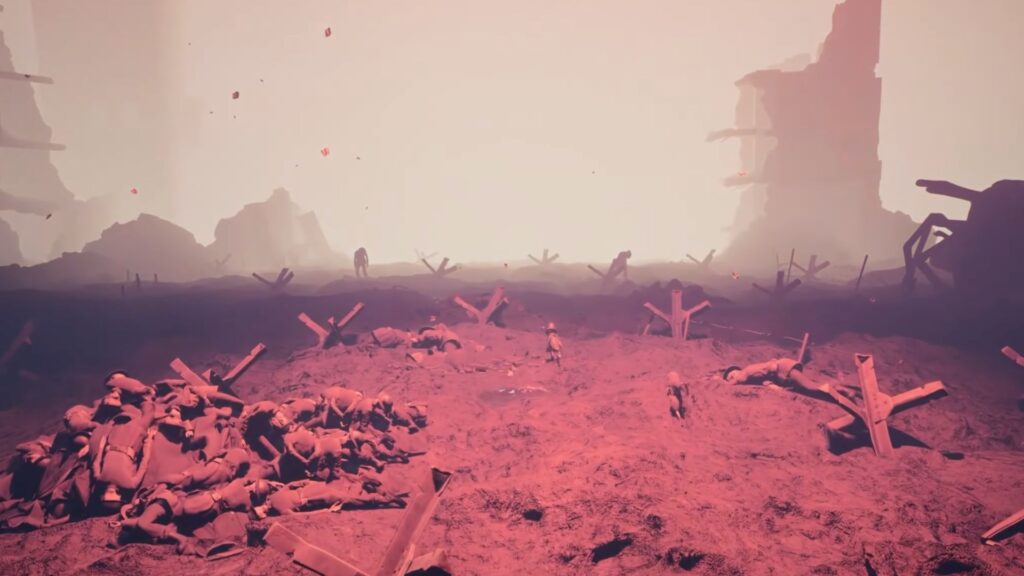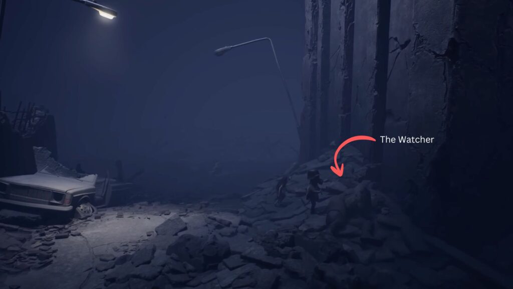 Now, walk toward the clock tower. You’ll pass the fallen soldier lying dead in the rubble, and yes he is The Watcher in this chapter. Keep walking straight through into an eerie open battlefield covered with dead soldiers. The path here is straightforward — just keep moving forward.