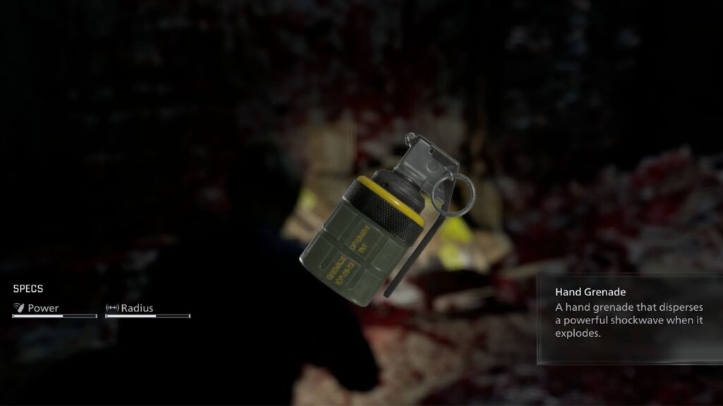 Eventually, lead Chunk toward a door passage at the end of the area where he’ll get wedged in the door frame. Keep shooting until he finally bursts. When he goes down, he’ll break apart some wooden boxes nearby. Check them to find Hand Grenades inside.